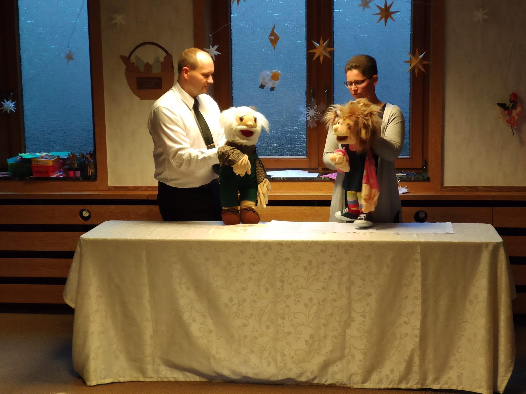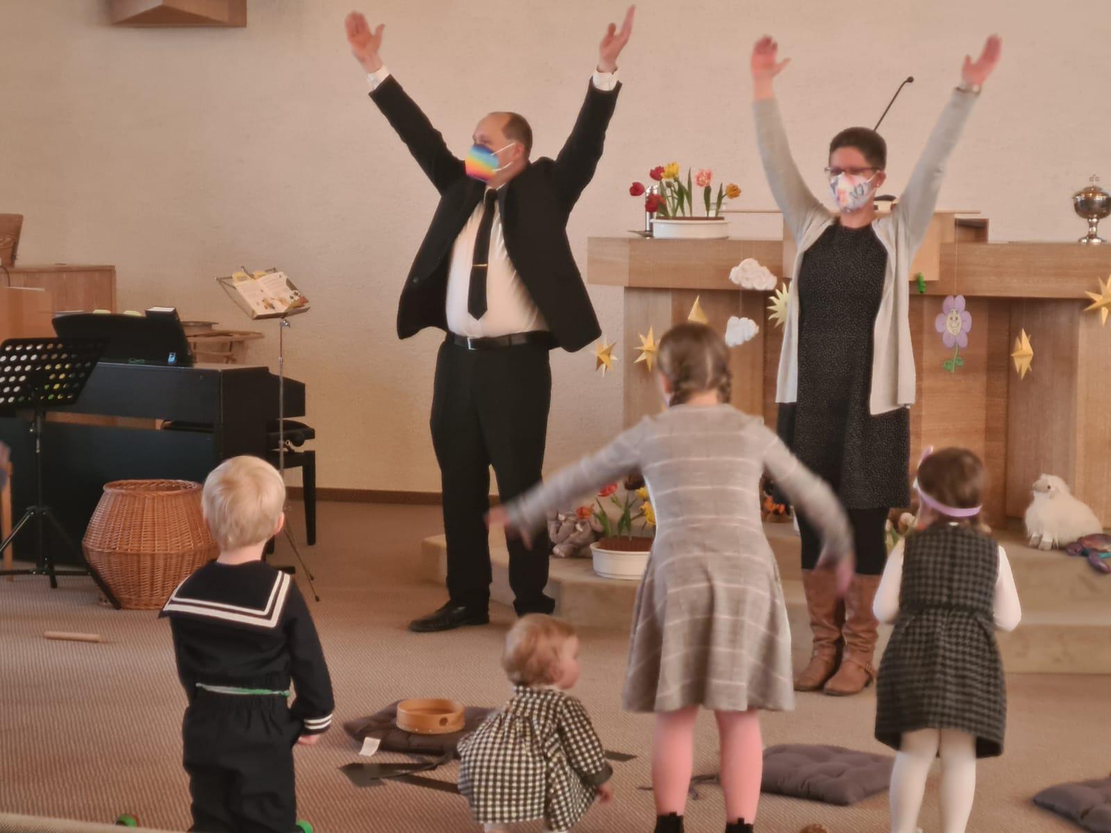 Die Schöpfungsgeschichte wurde kindgerecht als Bildergeschichte dargeboten, und als die Puppe Emma zusammen mit ihrem Opa die Schöpfungsgeschichte erzählte, folgten alle Kinder gebannt dem Puppenspiel. In ihrem speziellen Gottesdienst fühlten sich alle Kinder sichtlich wohl. Auf Nachfrage wurden jedes der Gottesdienstelemente von Kindern als besonders schön benannt. Ein Kind sagte: „Für mich war das allerschönste der ganze Gottesdienst!“ So konnte ein gelungener Start des neuen Formats „Kinderkirche“ festgestellt werden.